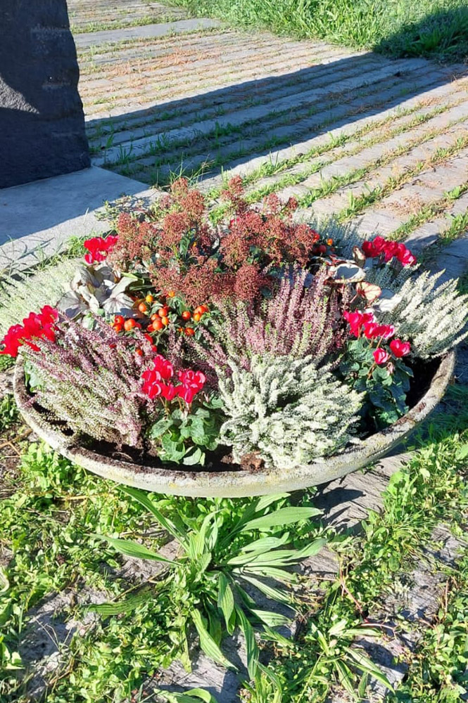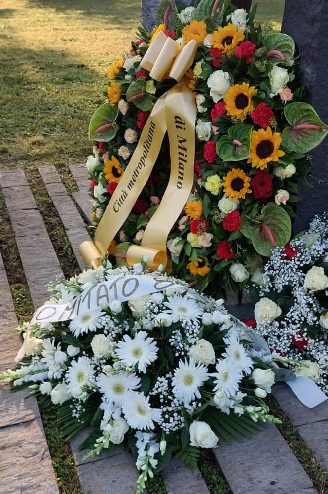 I fiori , i cuscini e le corone delle varie istituzioni sempre belli e illuminati dal sole.