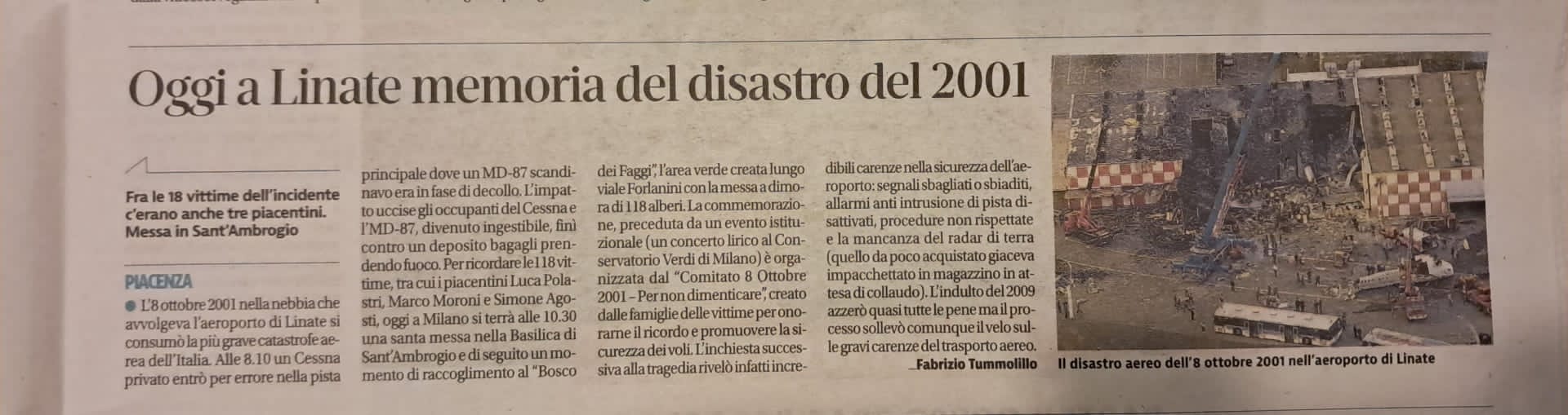 Al mattino presto un momento di raccoglimento in aeroporto dove alcuni di noi e alcune autorità abbiamo deposto fiori nell ora esatta dell'incidente, dove ora c'è il cippo a memoria.